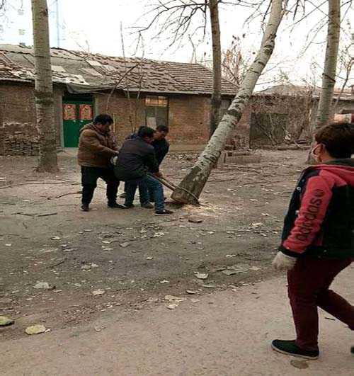 據(jù)北環(huán)二建社區(qū)書記王建芳介紹,本次樹枝修剪和刨根砍伐征得了居民代表的同意,逐級報告有關(guān)部門,經(jīng)技術(shù)人員考證,確定整治實施方案:對正常生長的楊樹枝進行修剪,對已經(jīng)枯死的楊樹進行刨根砍伐,減少安全隱患。